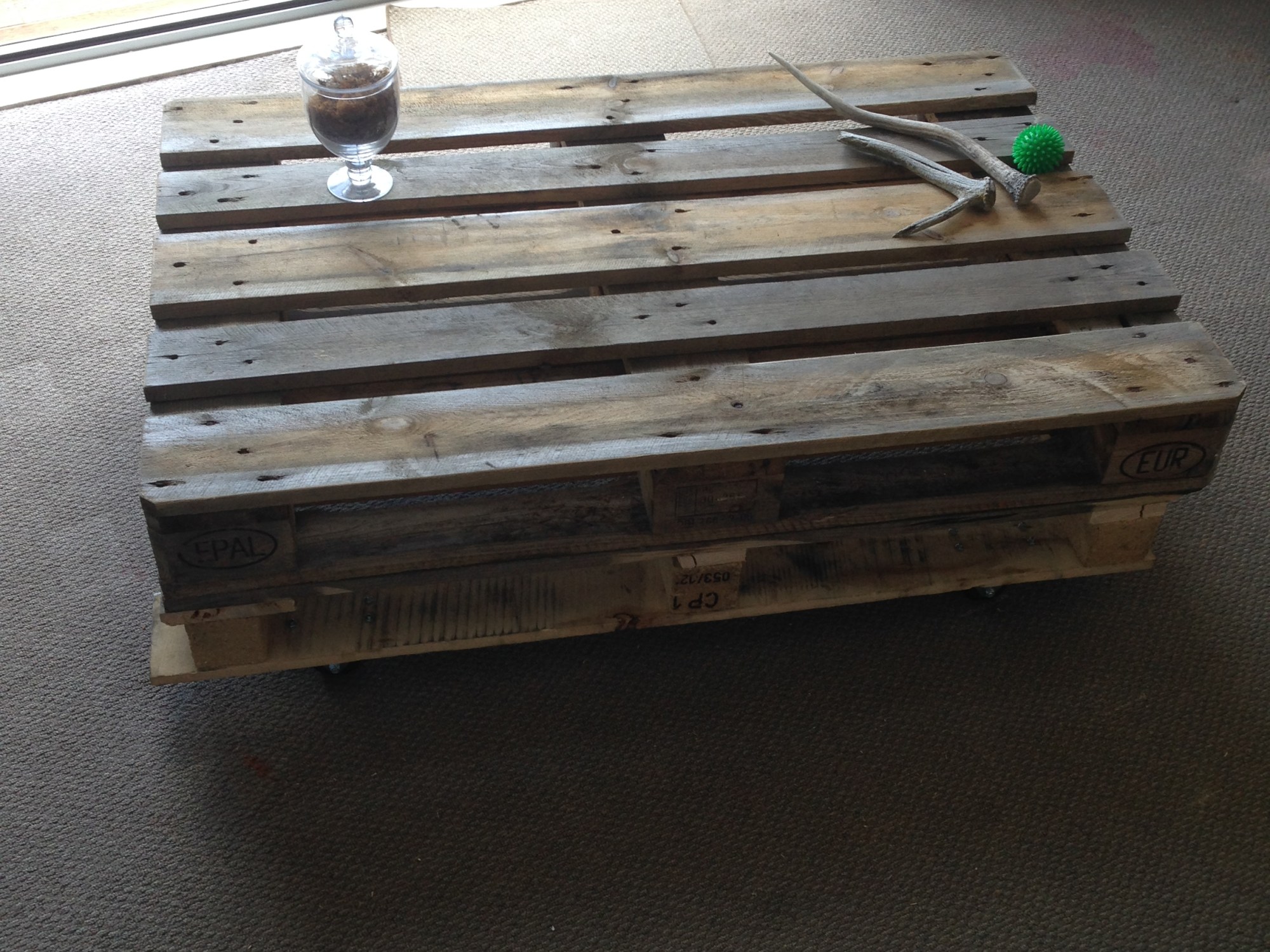 Something I had seen around various cafes and on the likes of Etsy, Inside Out Magazine and Frankie magazine, was a coffee table made of two pallets. I thought, “hey that looks easy enough,” and with the exception of a couple of bags of nails and the wheels, the pallet table was all but free.